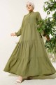 Bu hakim yaka elbise, doğal ve nefes alabilen %100 pamuklu keten kumaştan üretilmiştir. İç kısmındaki astar sayesinde gün boyu konforlu bir kullanım sunar. Ön kısmında yer alan düğme detayı, elbiseye zarif ve özgün bir hava katmaktadır.